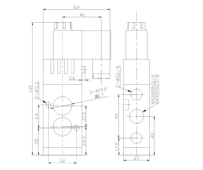 类别:二位五通板接式低功耗换向阀