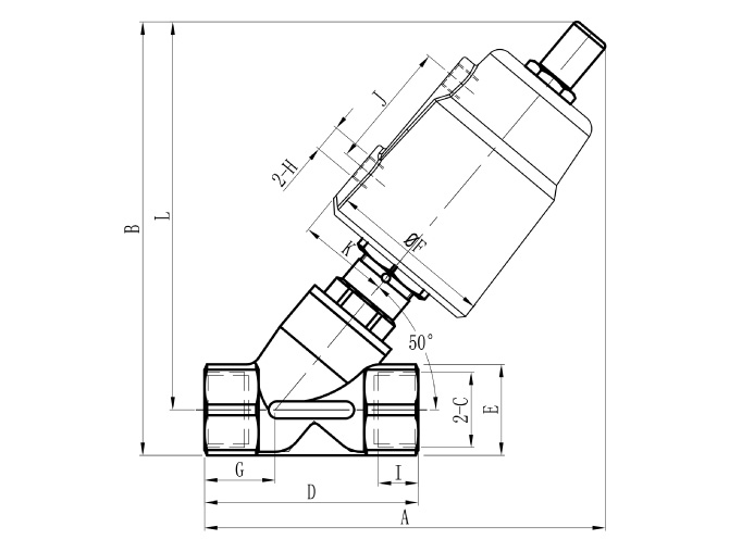 型号 | 流量通径DN(mm) | 执行器规格 | A | B | C | D | E | F | G | H | l | J | K | L |