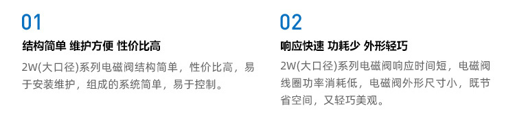 2W(大口径)系列是二位二通先导式电磁阀,平板式膜片结构启闭可靠,增强了该产品的使用寿命。