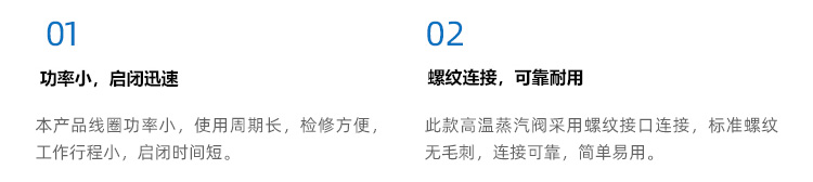 二位二通高温蒸汽阀,断电为常闭状态,绝缘等级为H级,保护等级为IP65,适用范围广。