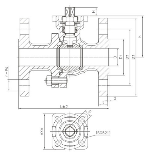 型号 | 接口螺纹 | DN | D | L | S | D1 | D2 | D3 | t | f | n-Φd | ISO5211 | H | 执行器 | |