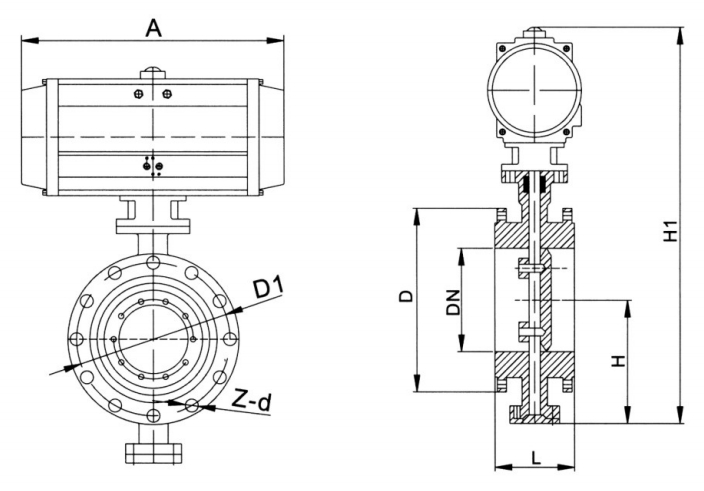 型号 | 公称通经 (英寸) | L | D | H | H1 | A | Z-d | 执行器 | |