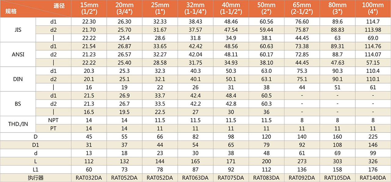 型号 | 尺寸 | 规格 | 材质 | 垫座 | O型圈 | 接口 |
