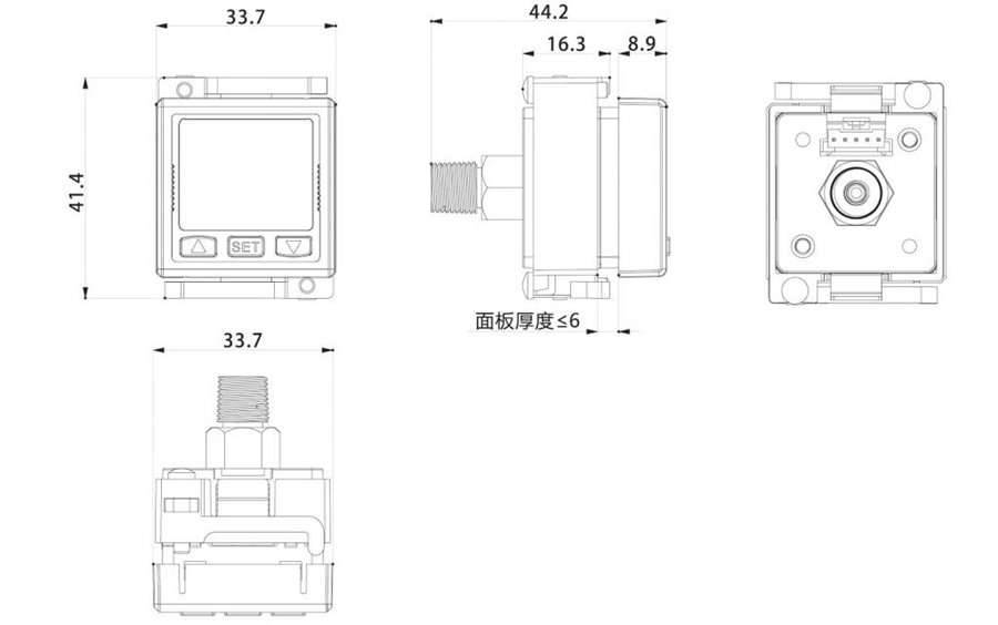 压力接口 | 外螺纹R1/8、G1/8、NPT1/8,内螺纹M5 | ||